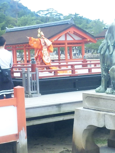 宮島の駅に着きますと、蘭陵王の像がお出迎えして下さいます。